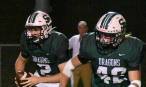 The Ste. Genevieve Dragons Varsity Football squad blows past the Fredericktown Blackcats 55-33 on...
